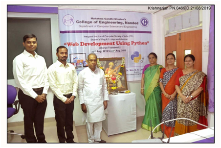 Honourable Director of MGM's COE Nanded Dr. Geeta S. Lathkar and HOD of CSE Department Dr. Archana M. Rajurkar guided the students and Honorable Shri Kamal Kishor Kadam graced the students with their valuable words. The inauguration function concluded with the vote of thanks given by Mr. Rahulsingh Bisen, Asst. Prof. of CSE Dept.