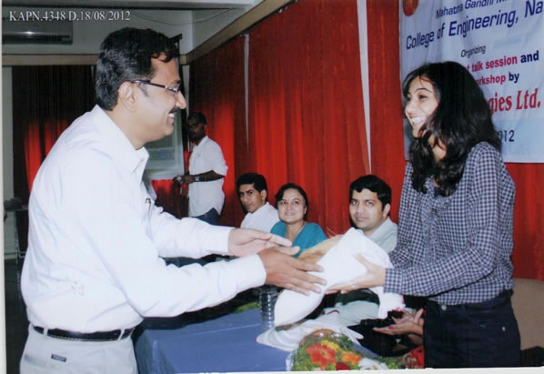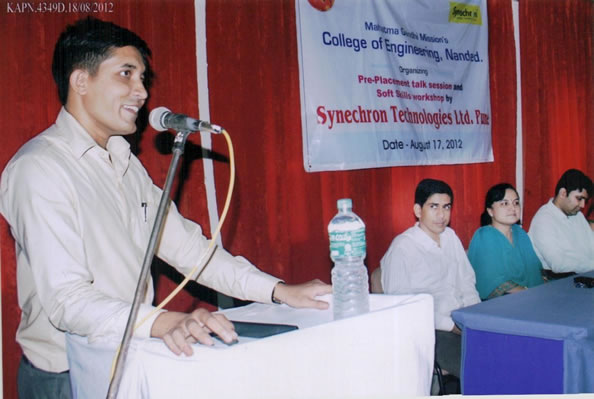 We have organized a Pre placement talk of Persistent Systems Limited on August 20, 2014. It discussion befor the recruitment process began in the campus. Mr Sachin Telkikar met and learnt more about the fresh yet-to-join students on campus as well as introduced them to the company, their rules, and regulations, code of conduct. The company presented pictures of the workplace, the premises to give an insight into the work ambiance. This was quite an interactive event, involving two-way communication between the company’s presenter and the aspiring employees. The students also got an idea regarding whether the company’s offerings are up to the benchmark of their requirements or no. Through this Pre placement talk, the company has projected itself in the most positive and progressive light, to be able to ascertain, approximately though, as to how many candidates are really interested in the company, and also, if anyone fails to get recruited, to ensure that given a chance, they would come back.
