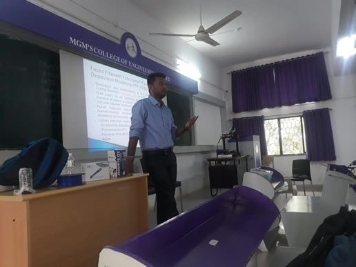 A Seminar on Micro/Macro Scale Manufacturing by Prof. Suhas Joshi was organized in M.G.M’s College of Engineering, Nanded on 3rd April 2015 .This Seminar was organized for BE Mechanical. He interacted with students related to advances on Micro/Macro Scale Manufacturing.