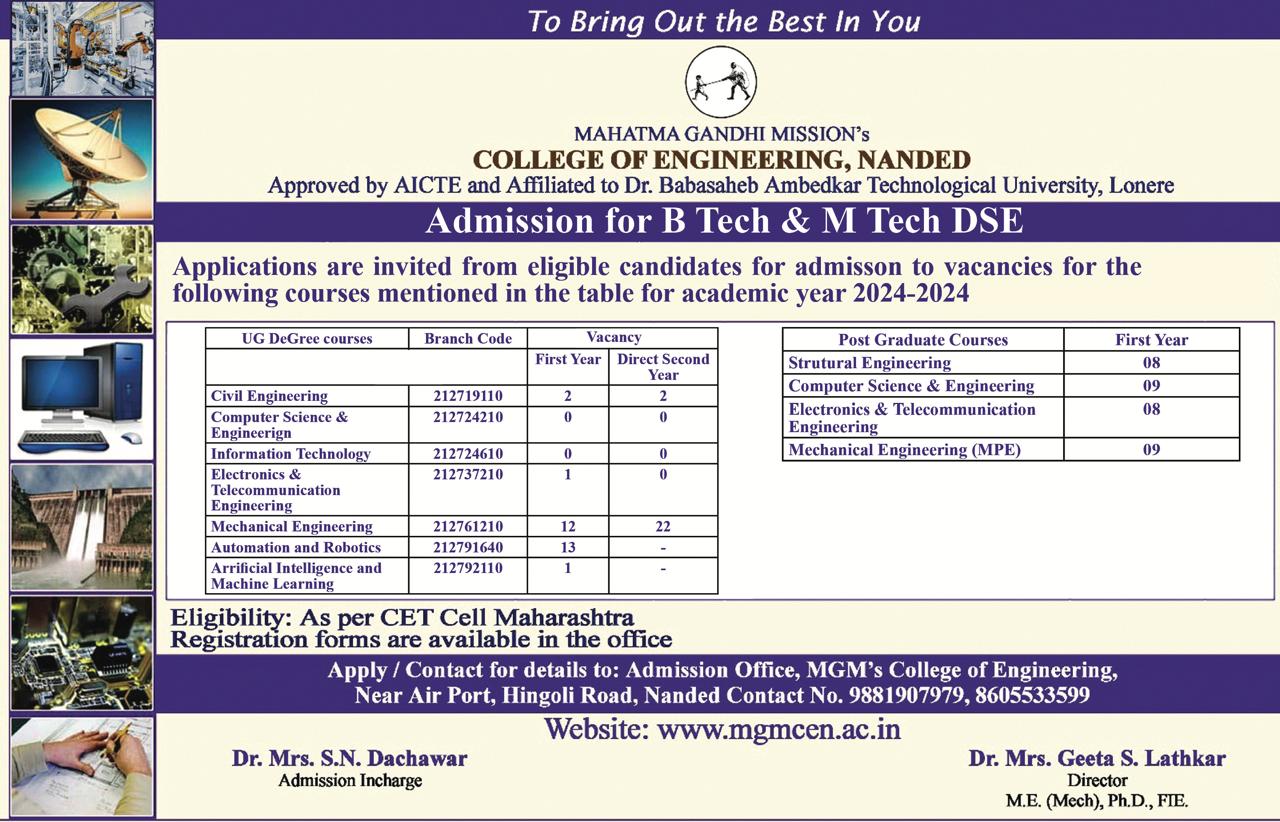 Admission for B Tech & M Tech DSE